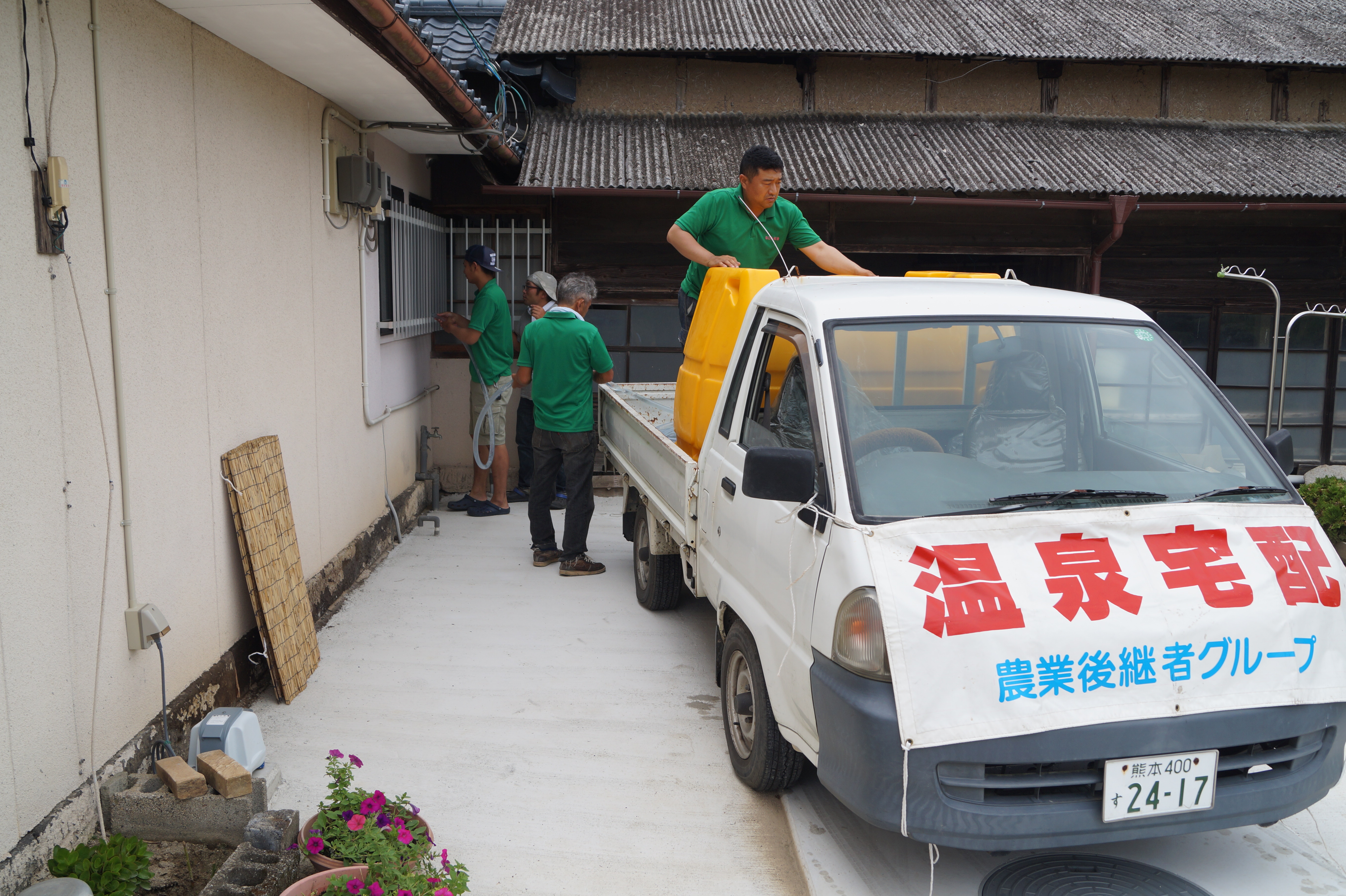 9月6日(水)に、今年で25回目を迎えた温泉宅配事業が実施されました。当日は、早朝よりタンク一杯に積んだ源泉と、女性部の皆様による温かい手作りのお弁当を希望された96軒のご自宅に届けていただきました。また、個人宅とは別に、温泉のみ町内の福祉施設(2事業所)に届けていただきました。